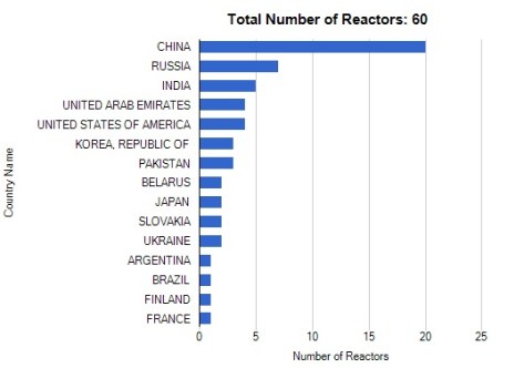 De acuerdo a los datos del Organismo Internacional de Energía Atómica (IAEA, por sus siglas en inglés) del 2017, 30 países se distribuyen de manera desigual 449 reactores nucleares para la generación de electricidad, con una capacidad instalada de 392.116 megavatios eléctricos (MWe); y unas 60 nuevas centrales nucleares están en construcción en 15 países.