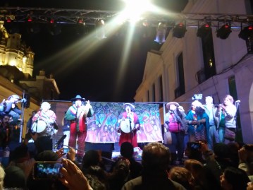 “¡Somos el monte que marcha!, ¡somos el monte que marcha!”, se escuchaba a lo largo de las columnas de personas que avanzaban a pie o bailando. Rostros pintados de verde y marrón, brazos en alto levantando banderas, cantos y mate compartido al paso. Con ese espíritu –y a pesar al frío– marcharon mujeres, hombres, niños y niñas desde la intersección de avenida Colón y La Cañada hasta la Plaza San Martín, frente al Cabildo. Allí se montó un escenario desde el cual representantes de la Coordinadora en Defensa del Bosque Nativo leyeron un manifiesto y decenas de artistas locales –entre ellos Doña Jovita, Raly Barrionuevo, José Luis Aguirre y Paola Bernal– amplificaron el mensaje.